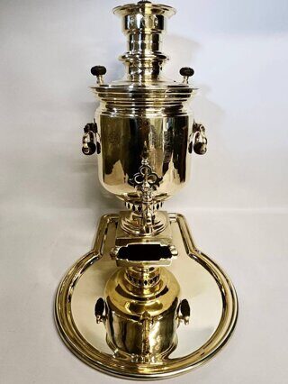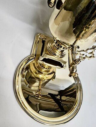 Поднос для самовара латунный толстостенный формы "замочная скважина" большой. Для самоваров от 7 литров.